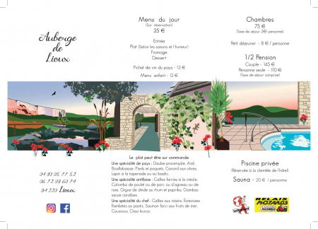 Auberge de Lioux Visuel de la carte de visite Visuel de la carte des tarifs et du menu Carte de visite ( recto et verso) Carte des tarifs et du menu